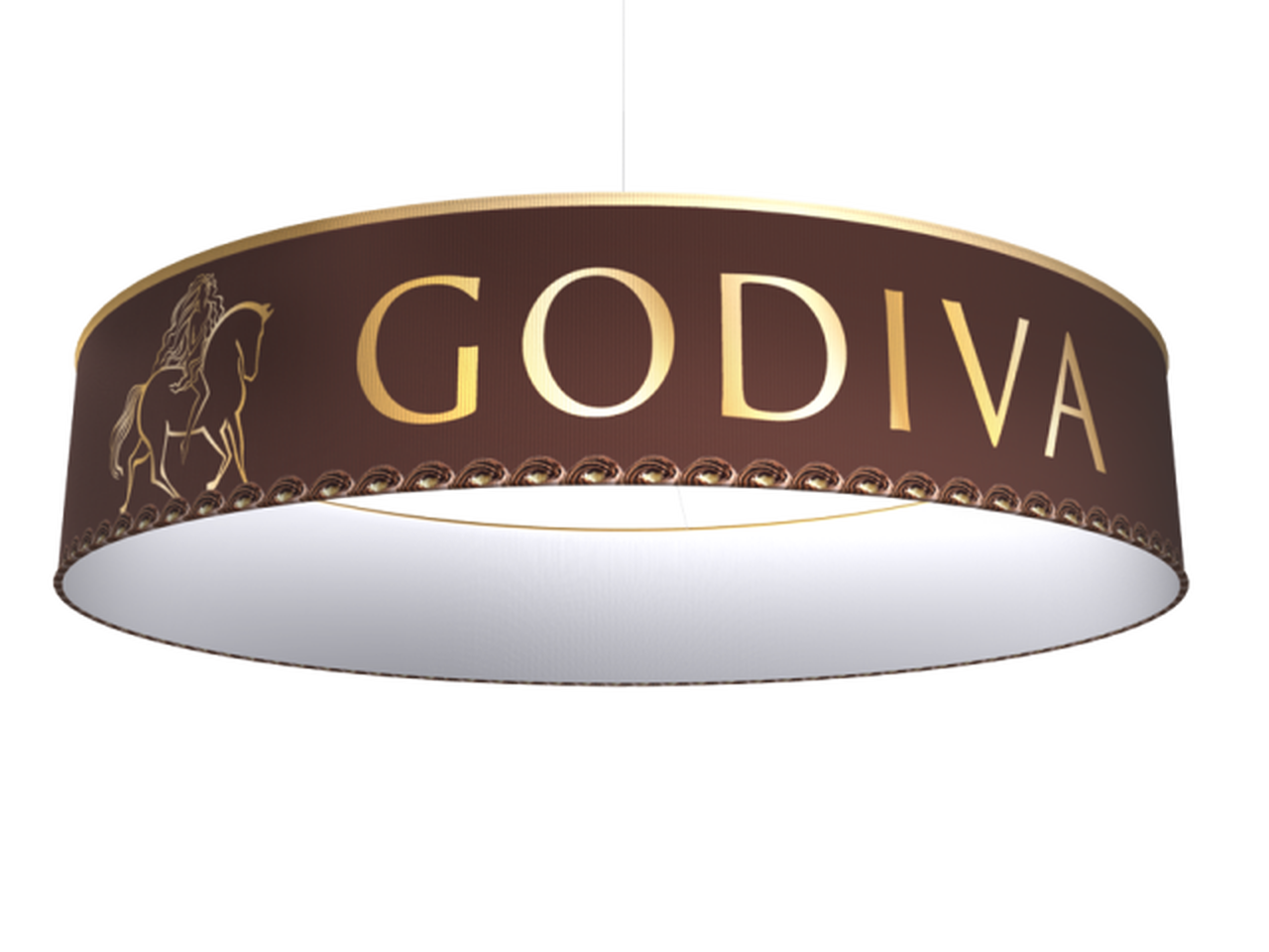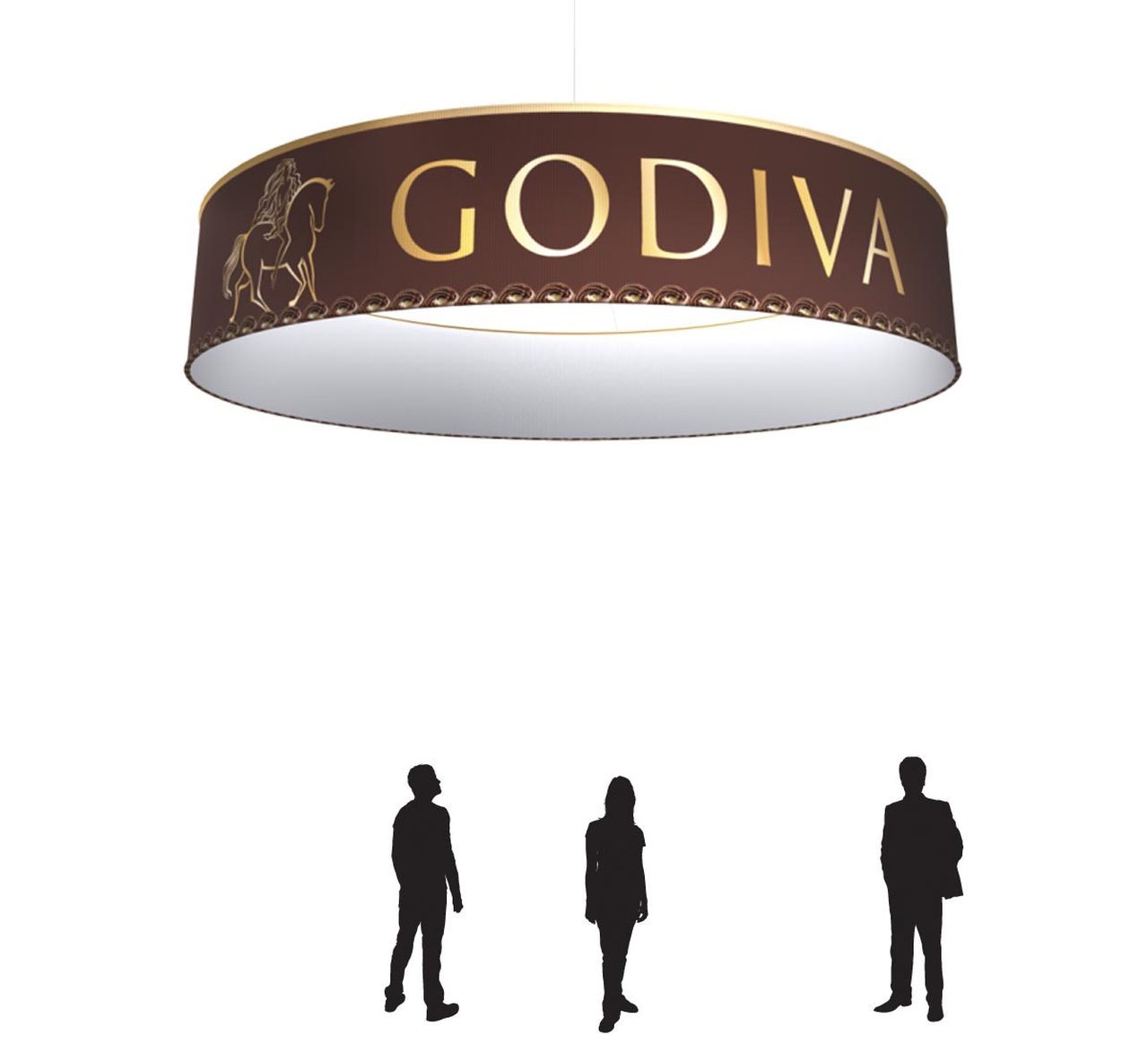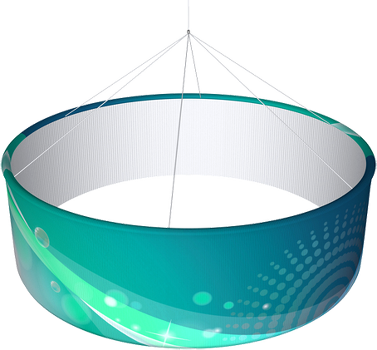 Command attention from afar with this Circle Hanging Sign, complete with a convenient canvas carrying case. This fabric dye sublimation hanging sign is available in 8', 12' and 15' models.