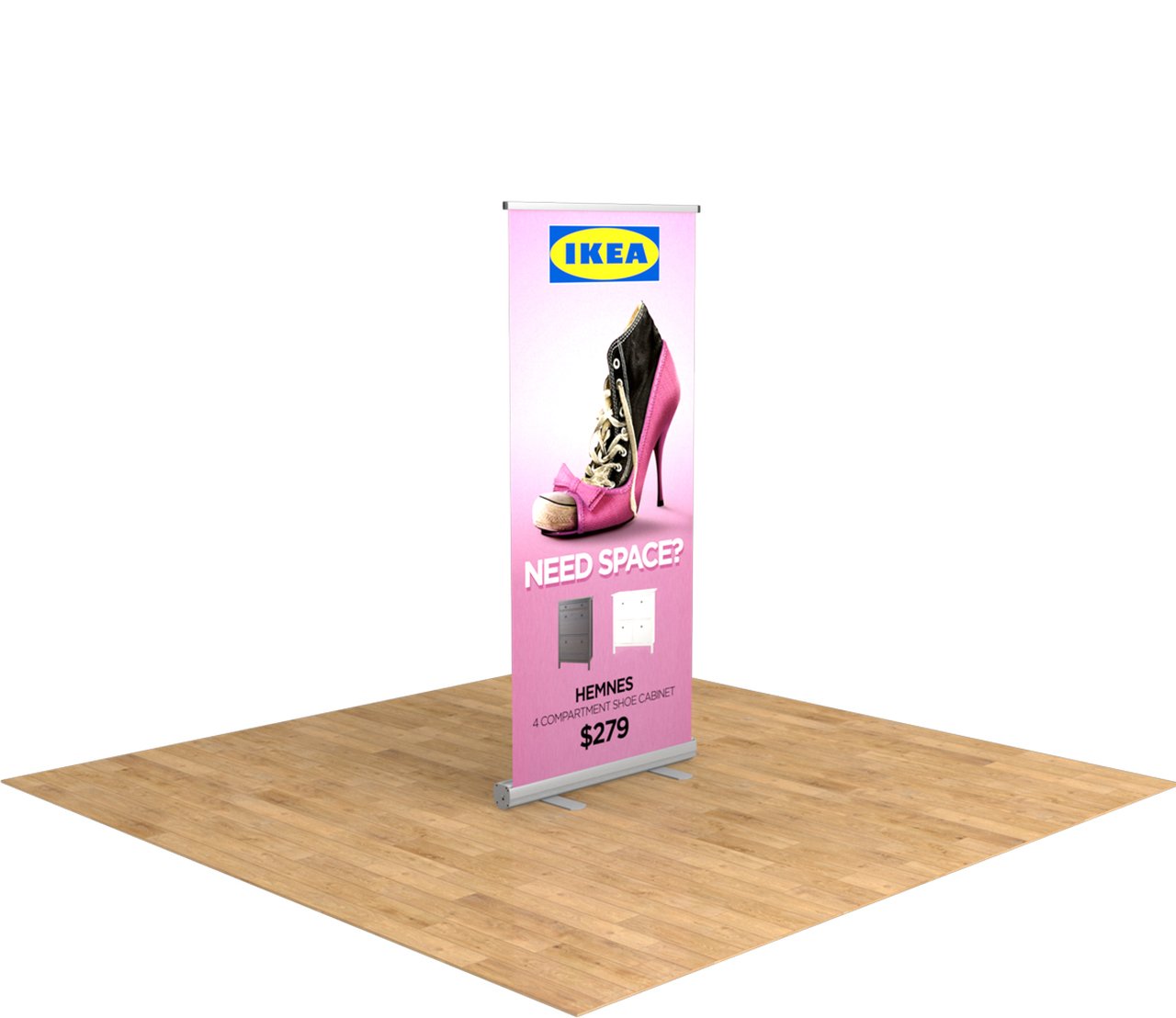 This cost-effective aluminum banner stand is an effective way to quickly relay a message to your audience while exhibiting in a busy convention hall. The Economy retractable banner stand is available in 3 sizes: 24", 33.5", or 36" wide by 80" tall. Each base has two leveling feet for added support. The best part about this retractable banner is that it sets up in just seconds, and comes complete with a canvas bag for easy transport in and out of trade shows and events.